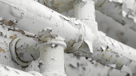 Intricate white plumbing system connection against a textured wall backdrop. Generative AI