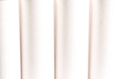 White background with many white cylinders. cylinders are arranged in pattern are all same size, abstract texture background for template pages and banners