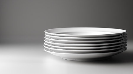 A stack of pristine white plates showcases simplicity and elegance, perfect for culinary presentations, dining events, or minimalist decor. Ideal for restaurant settings.