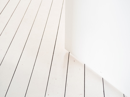 Wood floor with empty white wall background texture