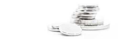 On a gray background are silver maple leaves coins of silver investment from Canadian Mint.
