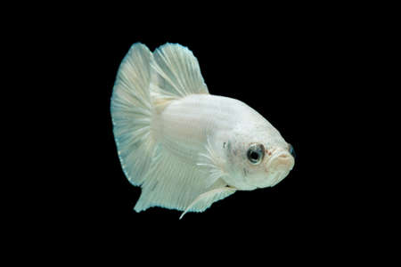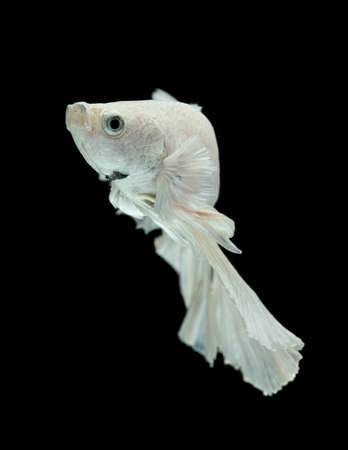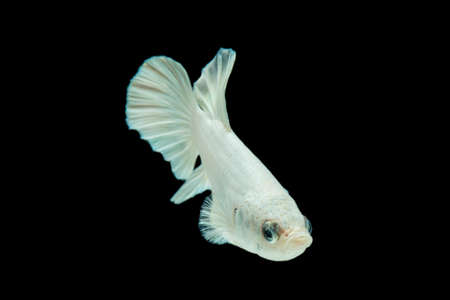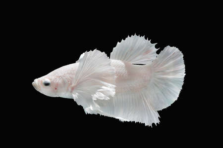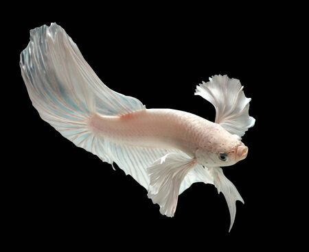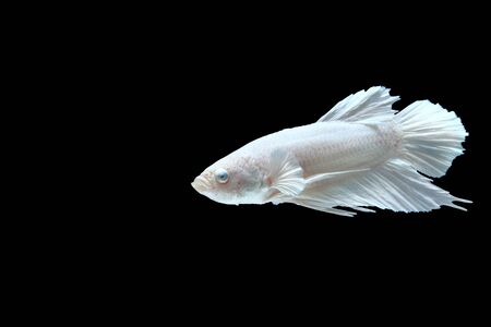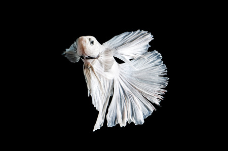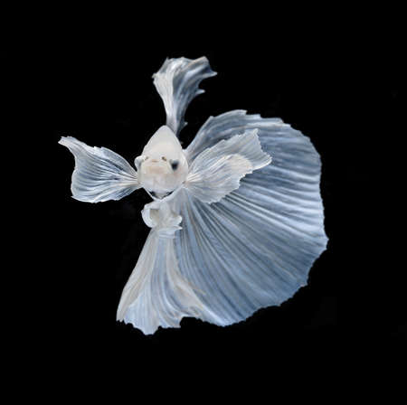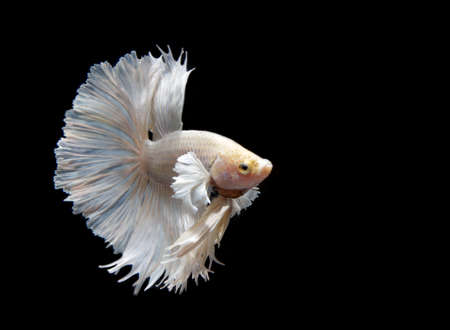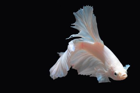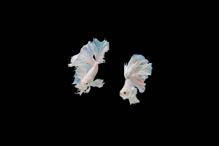 Capture the moving moment of white siamese fighting fish isolated on black background. Betta fish.