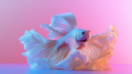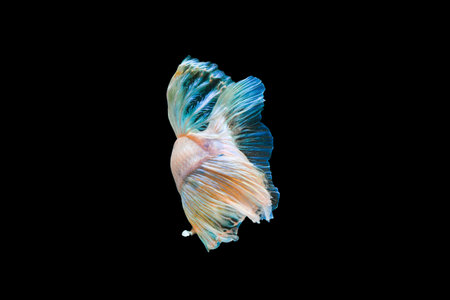This image showcases the delicate beauty of a Betta fish tail, its flowing fins exhibiting a range of pastel colors. The composition focuses on texture and form, using soft lighting to highlight the intricate details. Suitable for various creative projects, including educational materials or decorative elements.