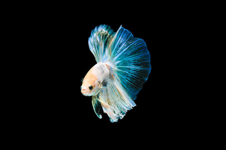 Capture the moving moment of blue siamese fighting fish isolated on black background. Betta fish.