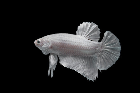 White Platt Platinum Siamese Fighting Fish .White siamese fighting fish, betta fish isolated on black background.