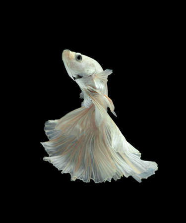 Capture the moving moment of white siamese fighting fish isolated on black background. betta fish.