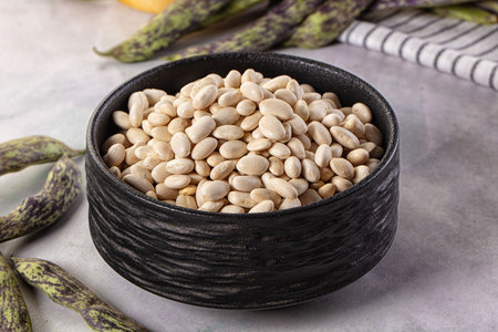 Source of vegetable protein. White bean texture closeup. A balanced, healthy diet for vegans and vegans.