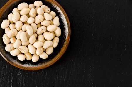 White beans on black background
