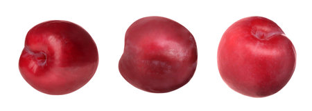 Set of red plums isolated on white