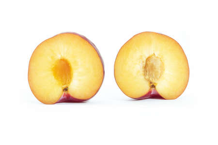 plums on a white background. Juicy ripe fruits