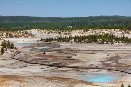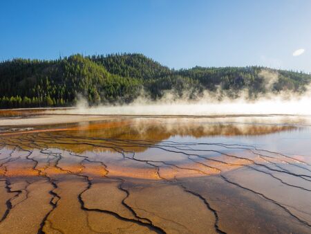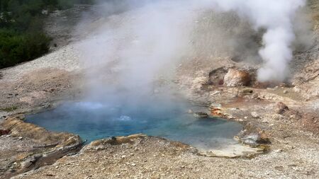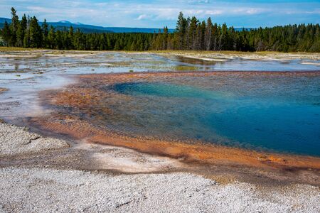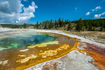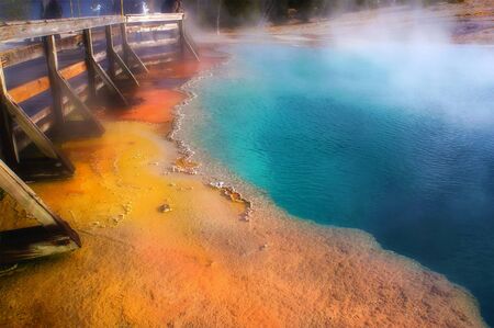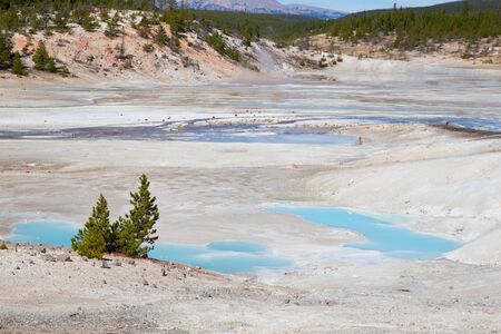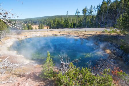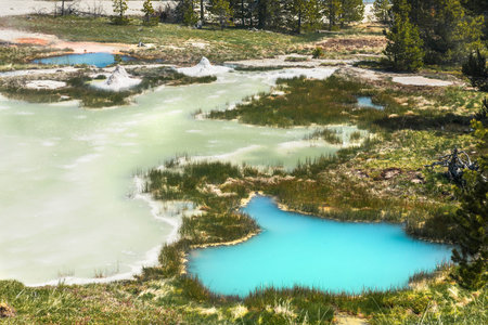 Inspiring natural background. Pools and geysers fields in Yellowstone National Park, USA.