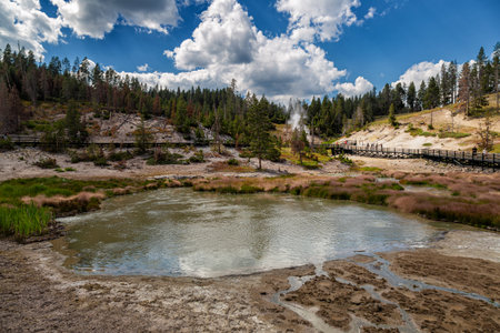 Leather Pool at Fountain Paint Pot path in Yellowstone National Park, Wyoming, USA