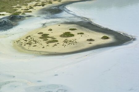 Beautiful Geyser lake with thermal springs that periodically throw blue clay and silt from the ground. Altai mountains, Russia