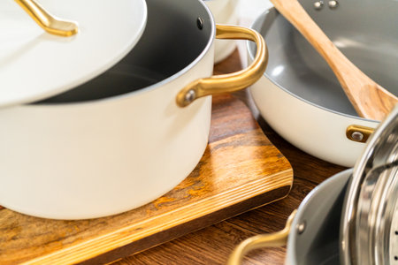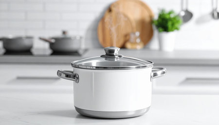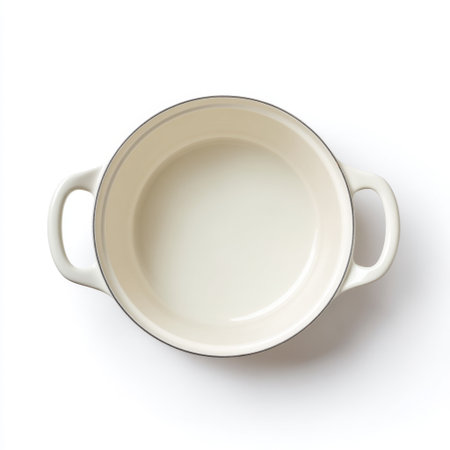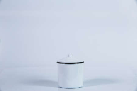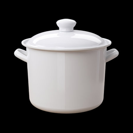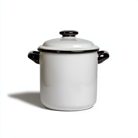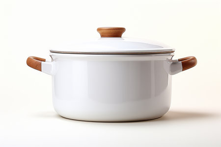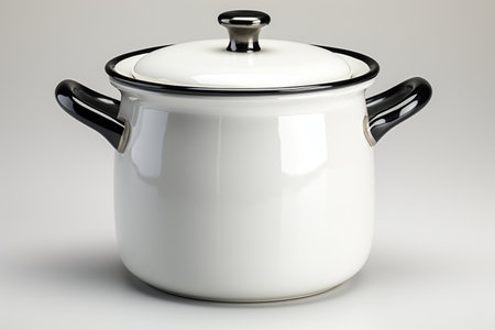 Classic Enamel Pot with Lid on White Background for Kitchen Use and Cooking Preparation in Culinary Arts Style