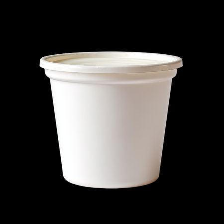 This image features a plain white plastic container with a lid, ideal for food packaging, storage, and various uses in home and commercial settings.