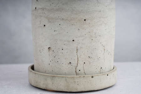 Creative Composition with gray concrete flowerpot. Minimalism. Natural material