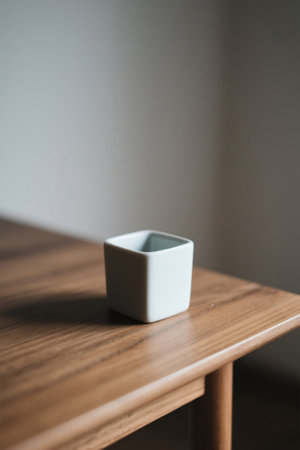 White square container on wooden tabletop
