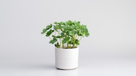 A small green plant in a white vase. Generative AI image.