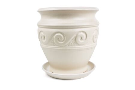 Blank ceramic pot for indoor plants isolated on white background