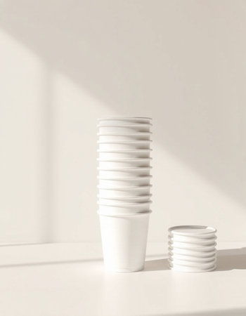 Stack of white paper cups on white background. 3d render.