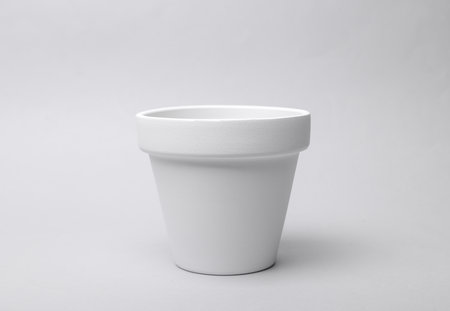 White empty clay flowerpot on gray background. Mockup for design