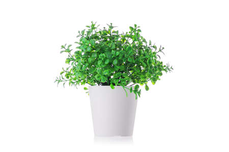 Green plant in a pot at home. Artificial flower vase decoration