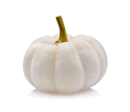 Close up of Squash on white background with copy space. Healthy vegan vegetarian food concept.