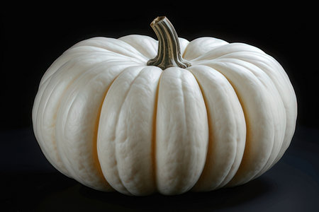 White pumpkin on black background. Seasonal fall greeting card concept. minimalist style