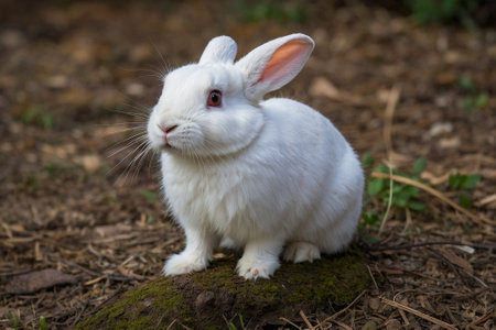 Rabbit white color in forest nature. Leaf park outdoor fur mammal. Generate Ai