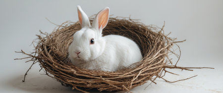 AI Generated. Adorable White Bunny Nestled in Rustic Bird Nest