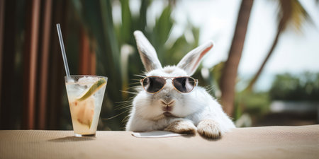 rabbit is on summer vacation at seaside resort and relaxing on summer beach