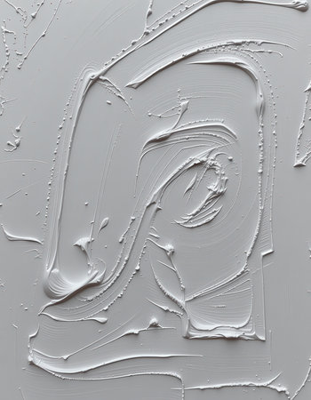 A close up photograph of an abstract white paint texture with brush strokes creating a variety of shapes and patterns.