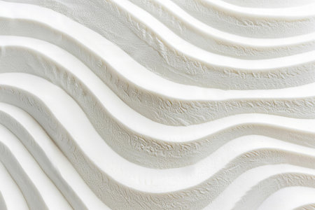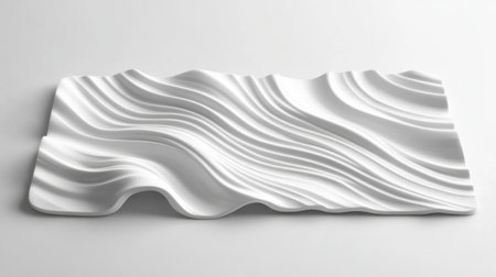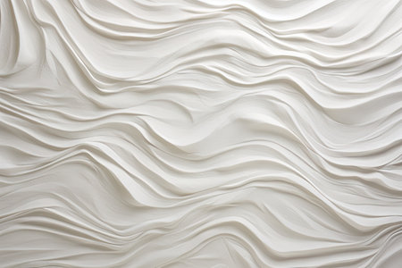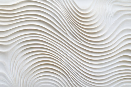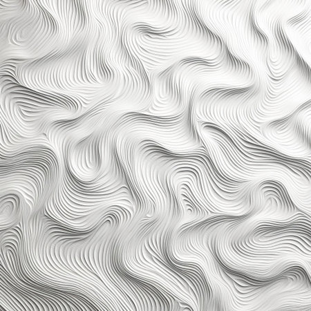 A close-up view of a textured white surface featuring smooth, flowing patterns and undulating lines, creating an artistic and minimalistic backdrop for various design projects.