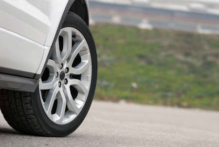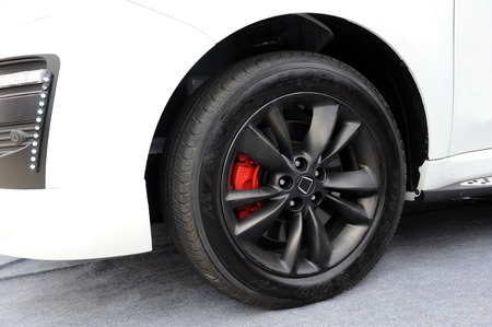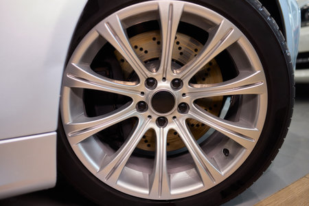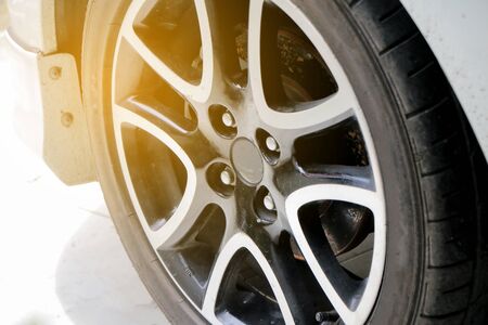 Car wheel.Close up of rims car alloy wheel.Metal disc wheel for the car at an exhibition.