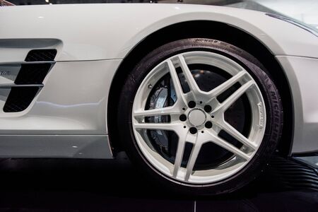 Thailand - March 26 : Close up shot of front wheel from Mitsubishi Concept GR-HEV on display at the 34st Bangkok International Motor Show on March 26; 2013 in Bangkok, Thailand.