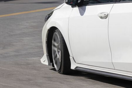 Blurred background with modern luxury white car . Car exterior details. Soft lightning