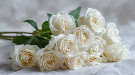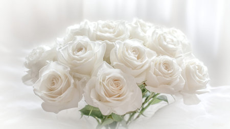 A stunning display of fresh white roses captures the essence of elegance, perfect for romantic occasions, weddings, or any special celebration with a soft background.