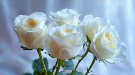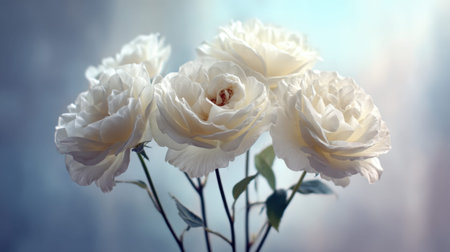A stunning composition of white roses against a soft gradient background, evoking feelings of elegance and tranquility, ideal for floral arrangements and romantic decor.