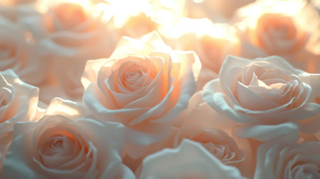 Elegant white roses with a golden sunset background glow
