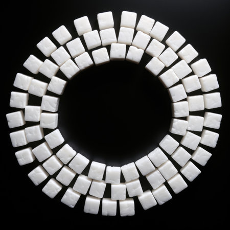 Top view of round shape from white chewing gums on yellow background, banner