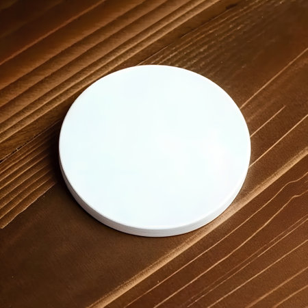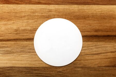 Mockup of round white business card on rustic background