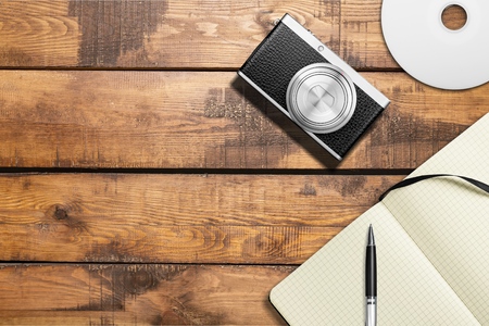 Camera, Credit Card, Notebook, Tablet and Mobile Phone are preparing before journey.