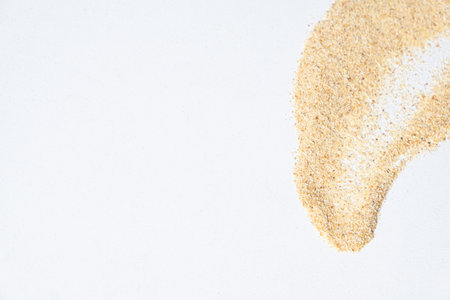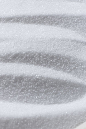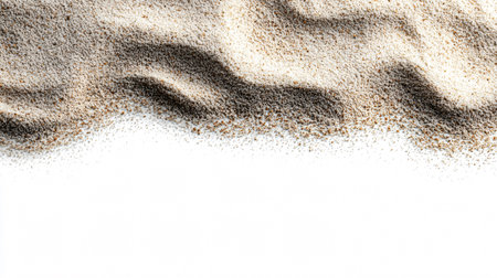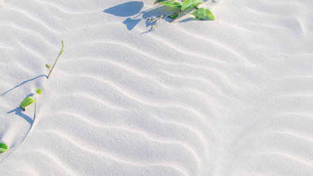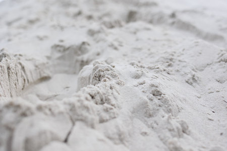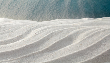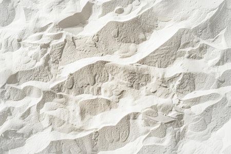 Abstract beachscape, featuring white clean textured sand as the focal point with a top view, background for various design projects.