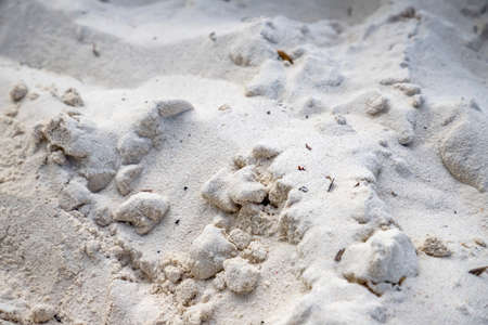 Coastal white beach sand with broken pieces of shell texture pattern for design background