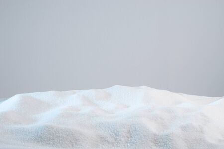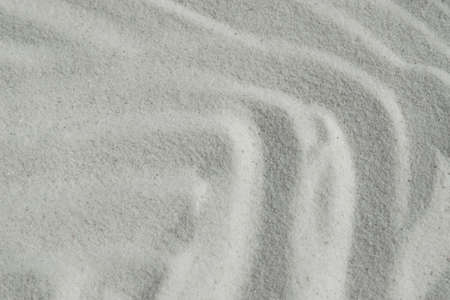 Natural white sand background for product presentation. Abstract sand texture. Top view copy space