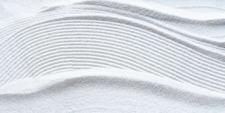 Zen garden with line pattern in white sand in Japanese style, Sand texture with the wave parallel lines pattern,Harmony,Meditation,Zen like concept