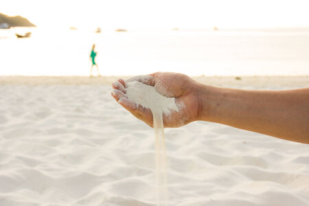 White tropical sand beach, close up. The fine sand on the beach. Sand surface