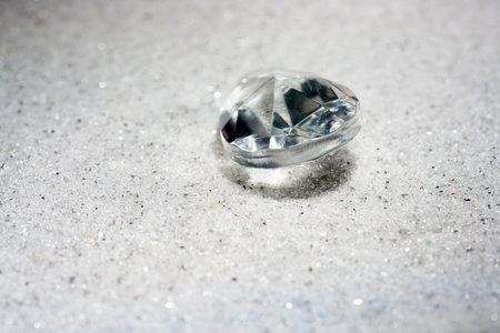 Artificial diamonds lying in the sand photographed in the studio with flash light