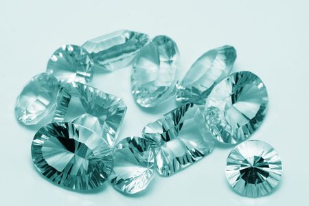 sapphire of different sizes on a white frosted glass