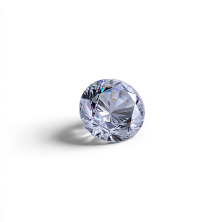 Stunning Round Cut Clear Diamond with Reflective Facets on White Background, Ideal for Luxury Jewelry, Elegance, and Glamour Themes